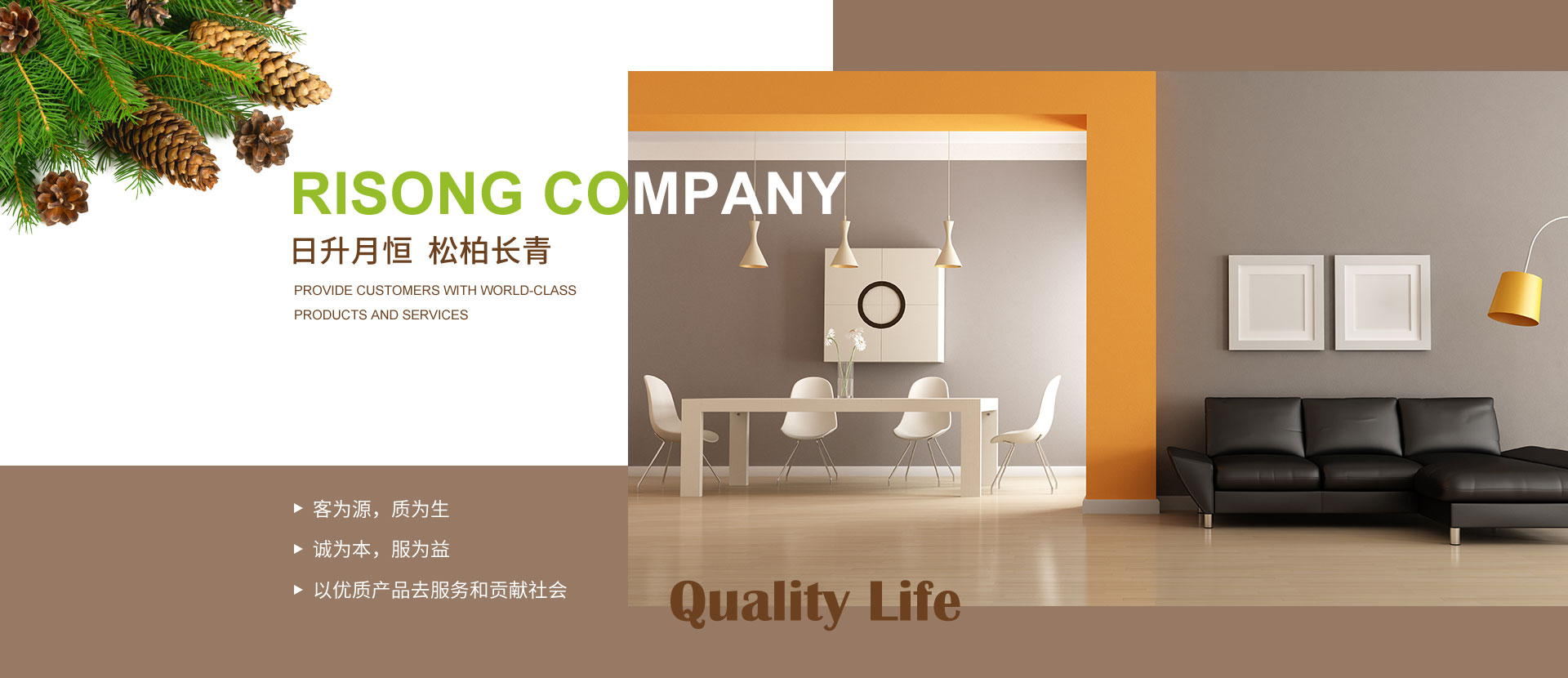 大連日松將一直秉承“以優(yōu)質(zhì)產(chǎn)品去服務和貢獻社會”的經(jīng)營宗旨;“客為源,質(zhì)為生、誠為本、服為益”的經(jīng)營理念;達到“使用者、銷售者、制造者”三者并存共榮之經(jīng)營思路;全體日松人將以“熱情、禮貌、快捷、準確”的行動指南,不懈努力的為每一位客戶,提供行業(yè)內(nèi)一流的高端、環(huán)保、舒適、健康的產(chǎn)品和細節(jié)服務,打造出適合“您”的優(yōu)質(zhì)家居住宅環(huán)境。